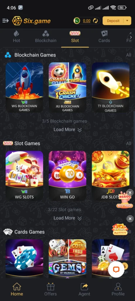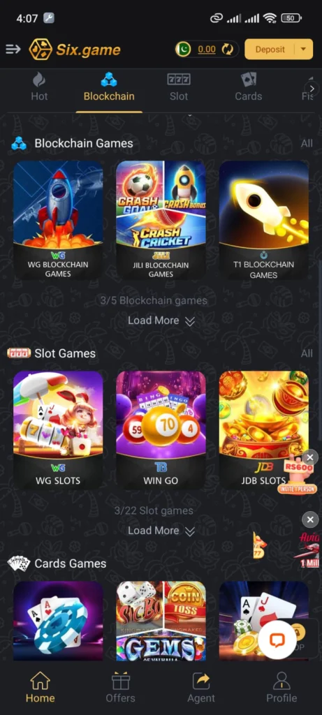 Six Game supports multiple payment options including Easypaisa, JazzCash, and local bank transfers, making it convenient for Pakistani users to deposit or withdraw funds.