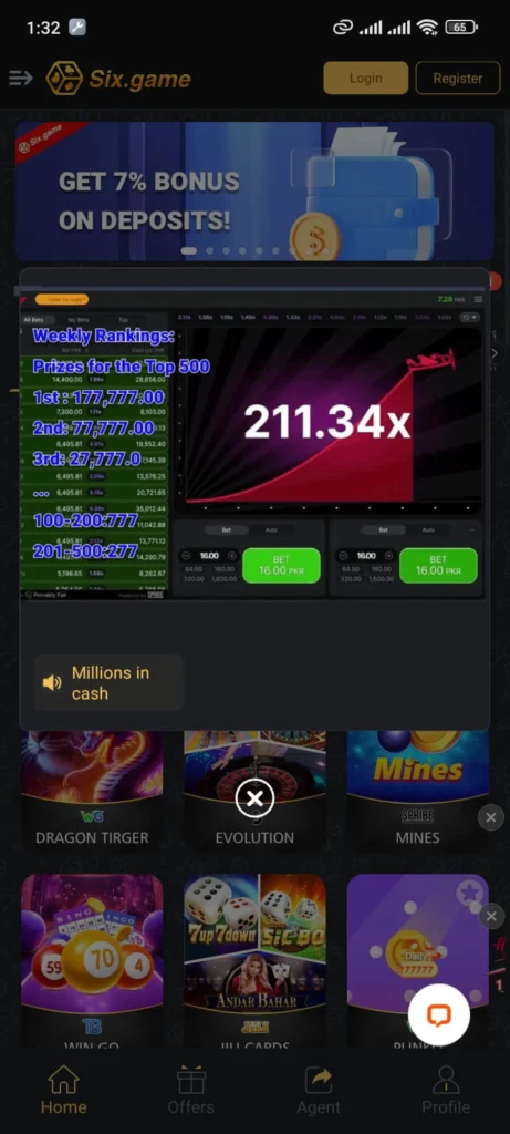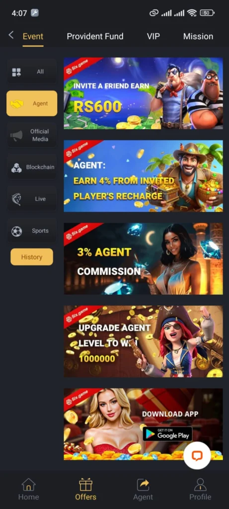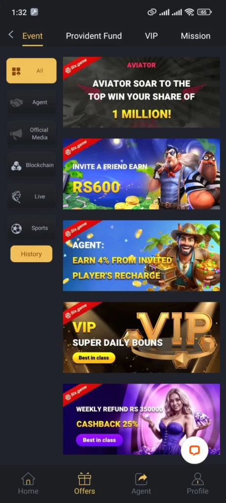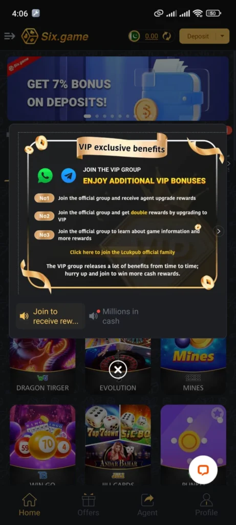 Six Game offers daily bonuses, deposit rewards, and referral bonuses. Use these offers to extend your playtime and maximize your winnings without spending more.