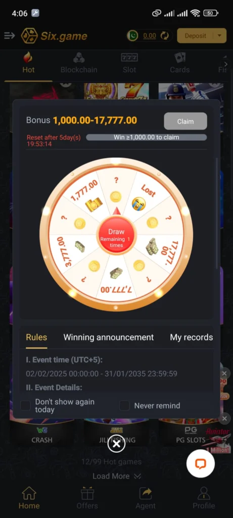 Keep an eye on new events, tournaments, and seasonal offers. Six Game regularly adds limited-time promotions that can give you higher rewards.