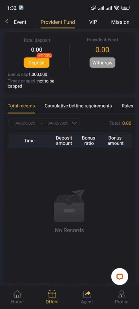 Once logged in, tap on the “Wallet” icon or navigate to “My Account → Deposit”.